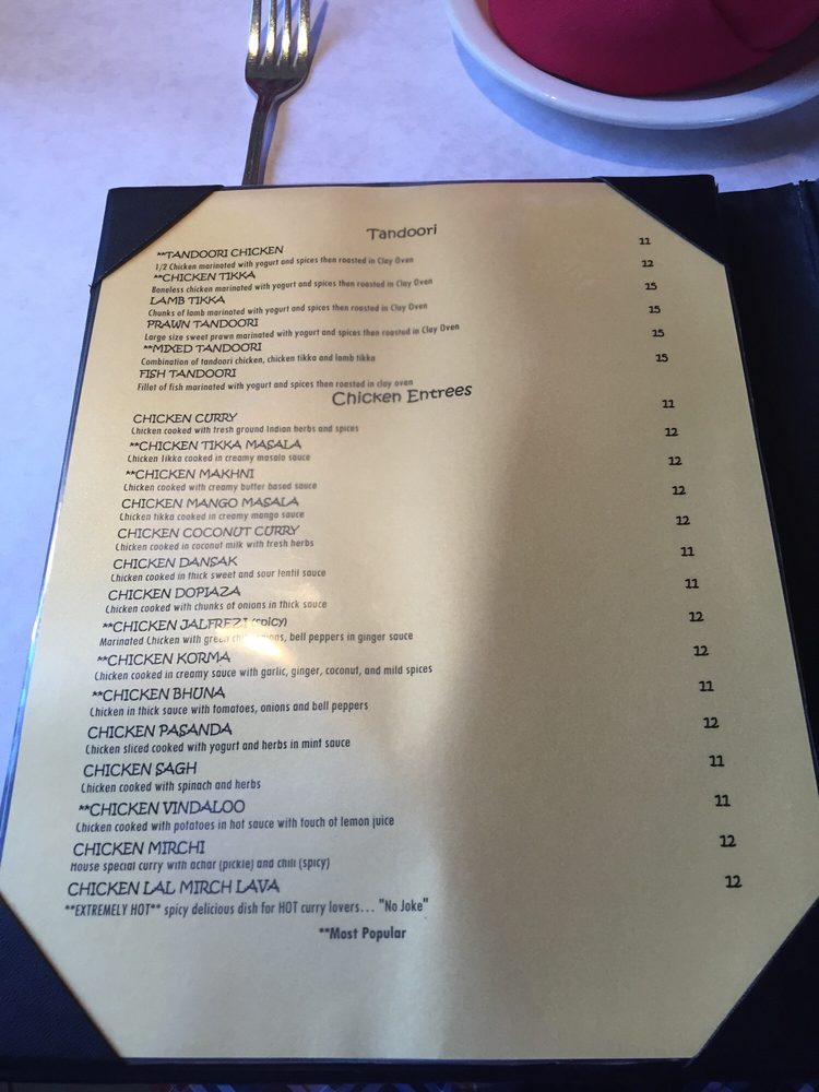 The menu is a delightful exploration of spices and textures, featuring popular chicken entrees like Chicken Tikka Masala and Chicken Coconut Curry, each made with fresh herbs and traditional techniques. Also, don't miss their signature Chicken Makhni, which transitions you to a realm of creamy indulgence.